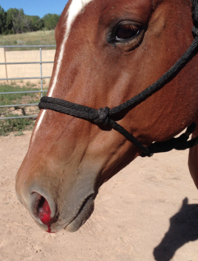 Bir veya iki burun deliğinden kan gelmesi (epistaksis). Hafif travmadan ciddi pulmoner kanamaya veya guttural pouch mikozu gibi hayatı tehdit eden durumlara kadar geniş bir yelpazede değerlendirilmelidir. Egzersiz sonrası görülen burun kanaması EIPH'i düşündürür.